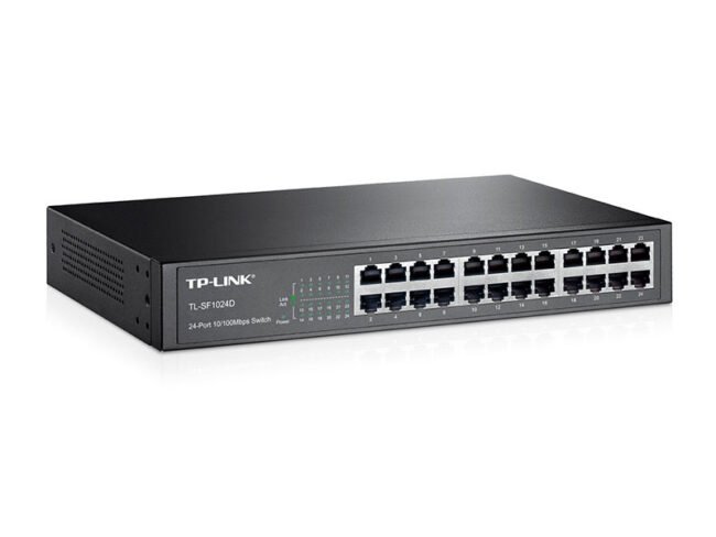 El TP-Link TL-SF1024D es un switch Fast Ethernet no gestionado, diseñado para ofrecer un rendimiento estable y eficiente en redes corporativas, educativas o de pequeña y mediana empresa. Su arquitectura de conmutación sin bloqueo garantiza la transmisión de datos a velocidad de cable, optimizando el flujo de información incluso en condiciones de alta demanda. Con una capacidad de conmutación de 4,8 Gb/s, una tabla de direcciones MAC de 8 K entradas y soporte para control de flujo IEEE 802.3x, proporciona una conectividad fiable y consistente. Su diseño sin ventilador asegura un funcionamiento silencioso, mientras que su construcción robusta y opciones de instalación en escritorio o rack lo convierten en una solución versátil y duradera para entornos que requieren estabilidad, bajo consumo energético y mínima intervención de mantenimiento.